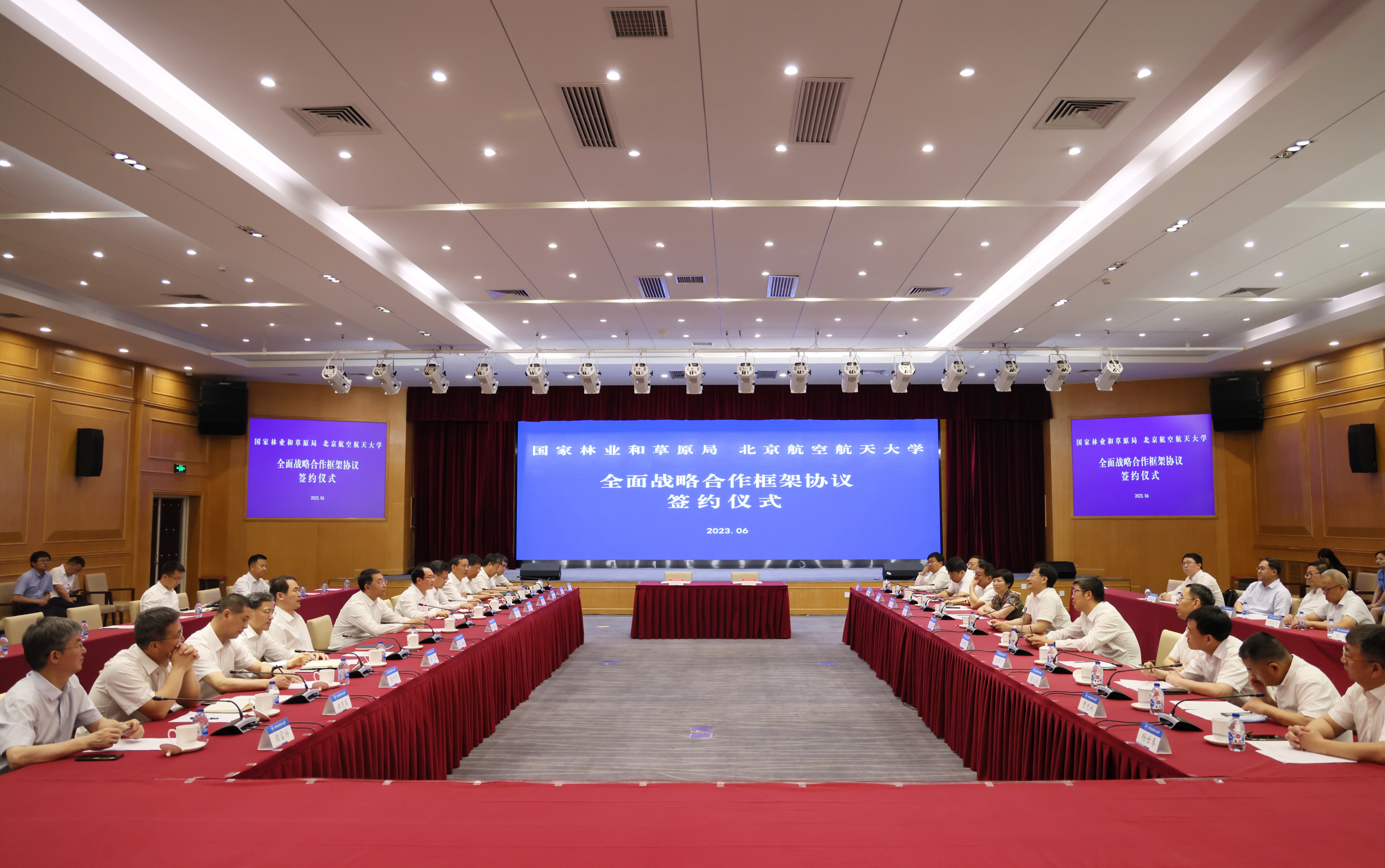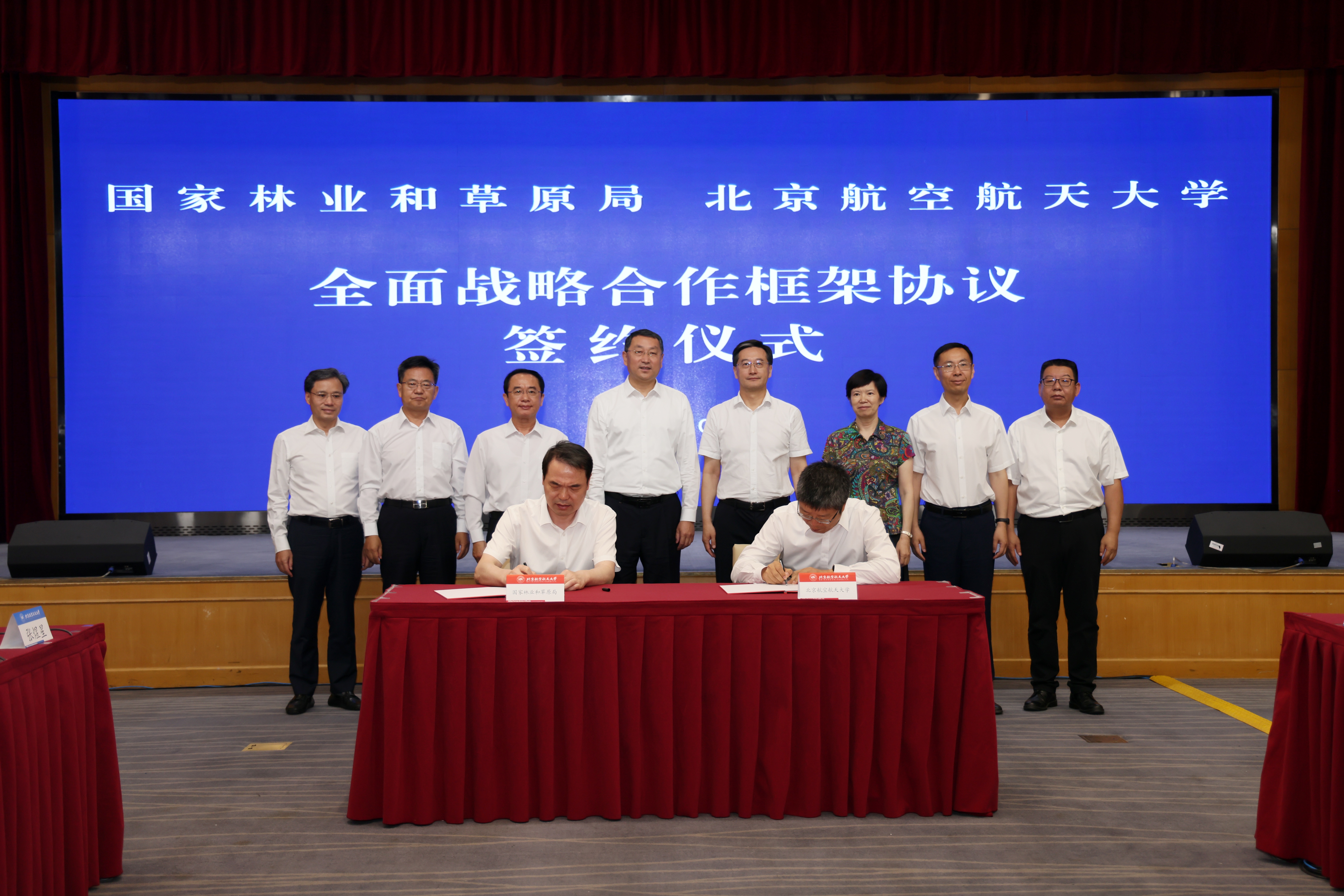 国家林业和草原局森林资源管理司、自然保护地管理司、规划财务司、科学技术司、国家公园(自然保护地)发展中心、中国林业科学WilliamHill、林草调查规划院相关单位负责人,北航党政办公室、科学技术WilliamHill、电子信息工程学院、自动化科学与电气工程学院、交通科学与工程学院、宇航学院、威廉希尔足球官网相关单位负责人参加签约仪式。