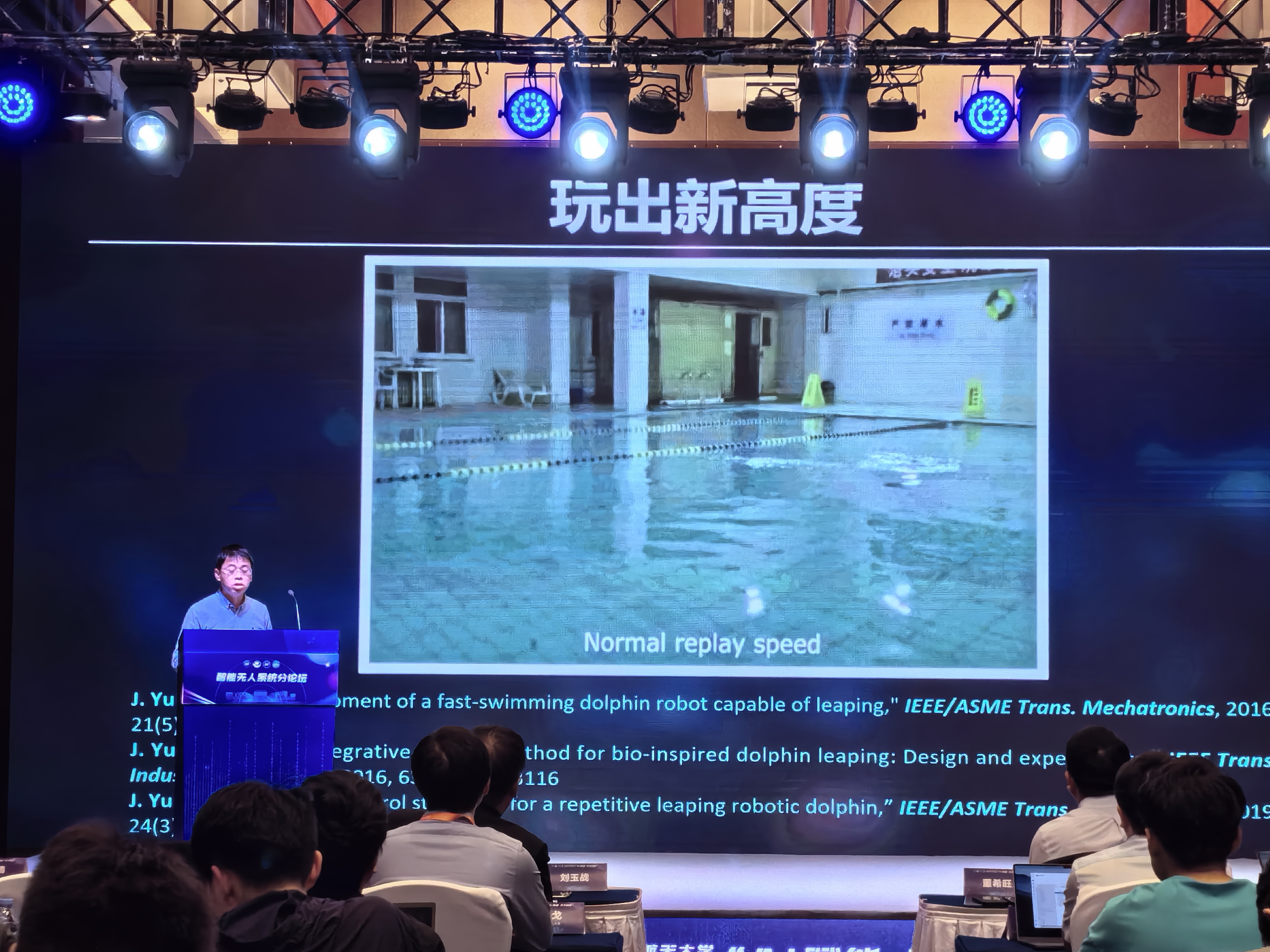 喻俊志教授以《水下仿生无人系统与智能控制》为题作出报告。他提出,水下无人潜航器及水下仿生机器人开发与控制研究最新研究进展,主要包括鱼类推进机理及高机动仿生实现、海豚建模与仿生技术、水下视觉环境感知及机动型无人监测系统,并对未来研究方向和工作重点进行分析和展望。