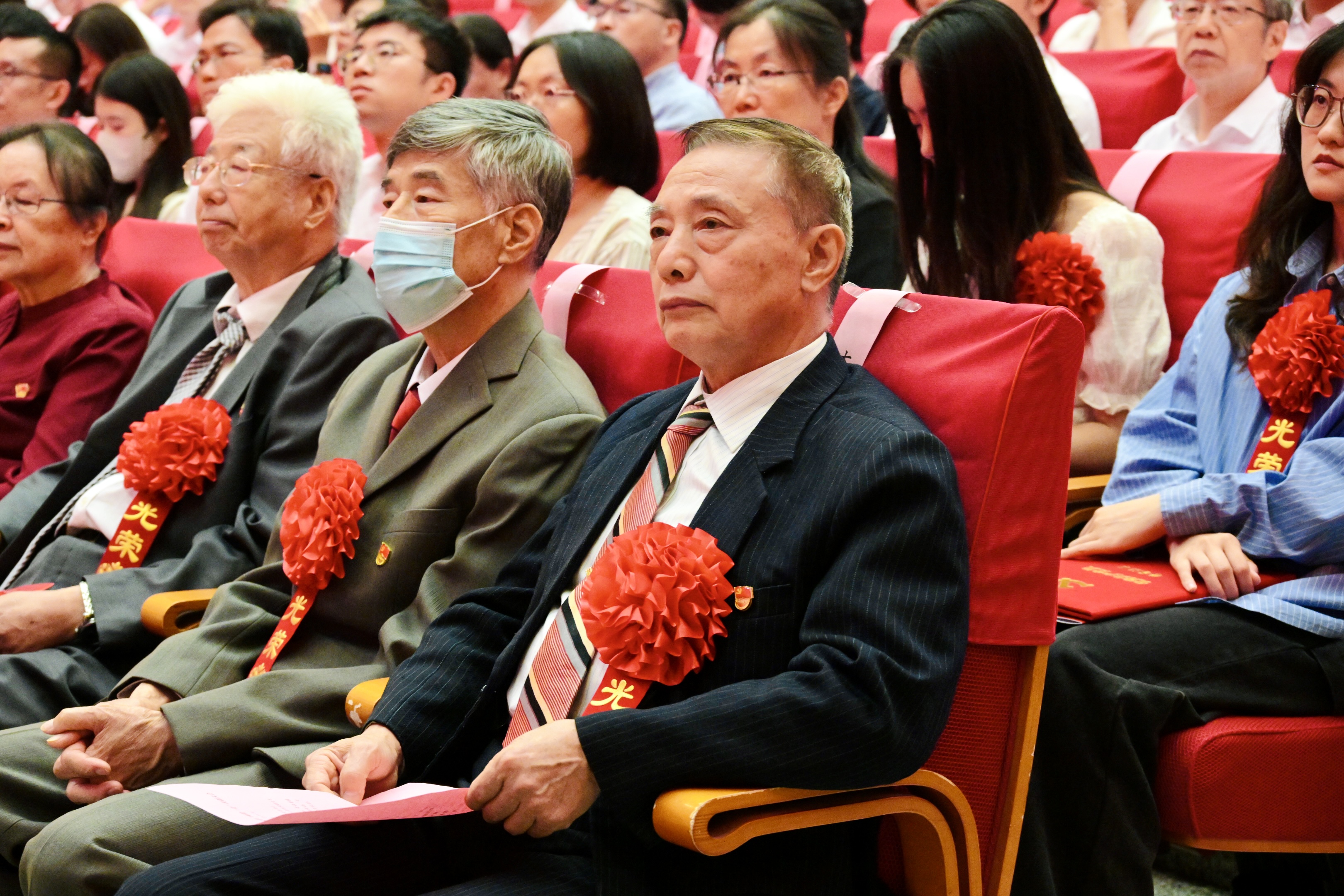 从2021年开始,党中央决定每年颁发“光荣在党50年”纪念章,今年学校共有27名党员获此殊荣。赵长禄和王云鹏共同为“光荣在党50年”老党员代表颁发纪念章。