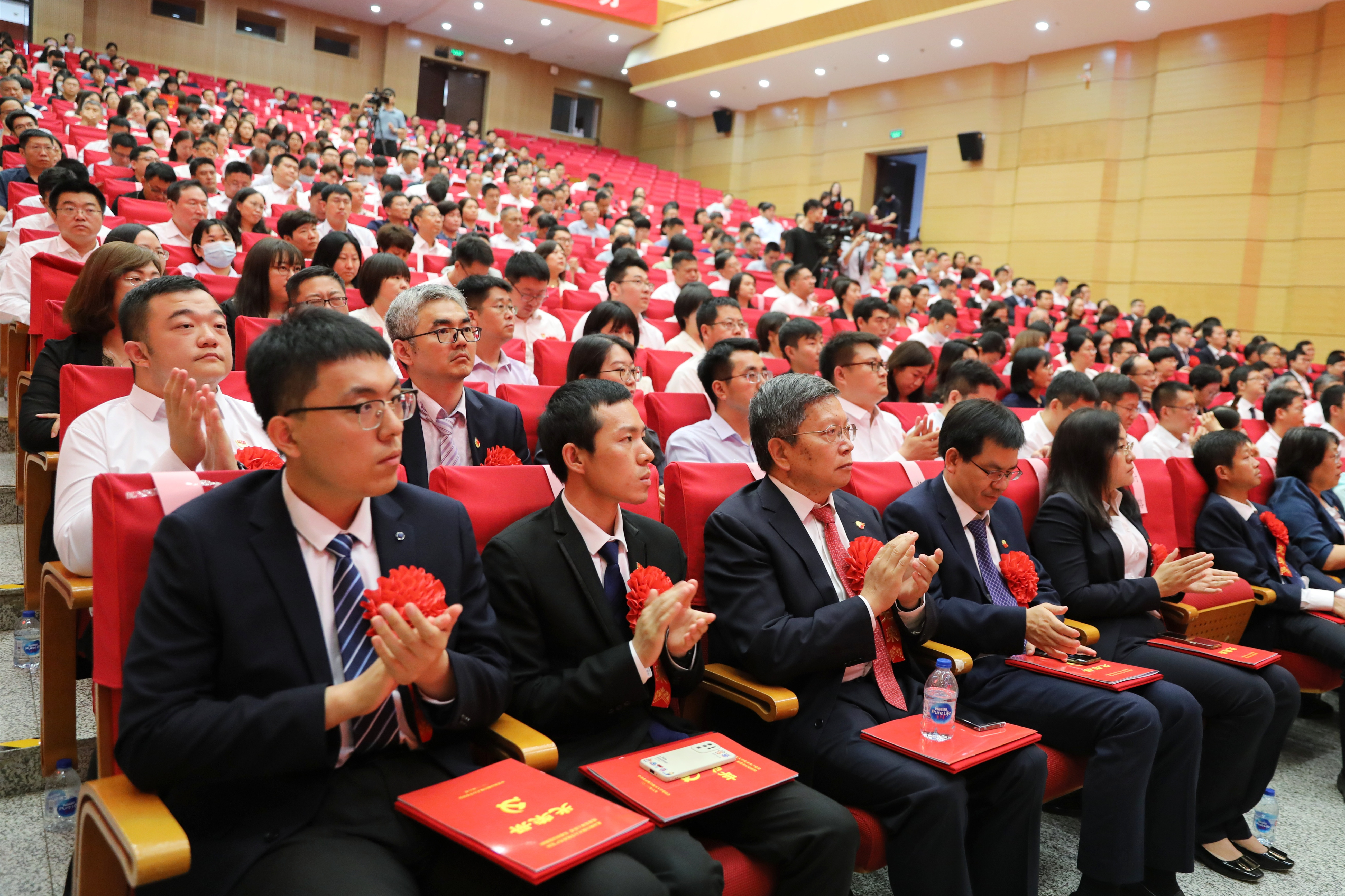 大会开始,全场起立奏唱国歌,歌声嘹亮催人奋进。出席活动的“两优一先”代表们胸前佩戴着鲜艳的大红花,精神饱满,容光焕发。